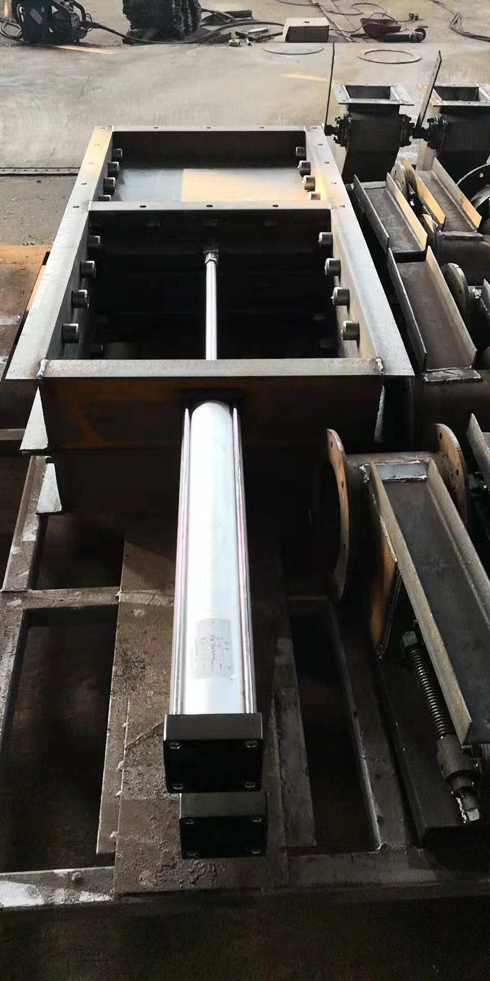 氣動(dòng)插板閥: 氣動(dòng)插板閥結(jié)構(gòu)特點(diǎn):氣動(dòng)單向平板閘閥采用鋼板焊接結(jié)構(gòu),配重桿自復(fù)位機(jī)構(gòu),結(jié)構(gòu)緊湊,工作平穩(wěn)。氣動(dòng)插板閥、氣動(dòng)雙向平板閘閥該閘門主要由框架、閘板及氣缸組成,氣源通過(guò)電磁換向閥帶動(dòng)氣缸,氣缸帶動(dòng)閘板作水平方向的往復(fù)運(yùn)動(dòng),達(dá)到閥門的啟閉目的。閘閥結(jié)構(gòu)簡(jiǎn)單,重量輕,操作靈活,裝拆方便,采用 碳素鋼制造,其強(qiáng)度高,性能好,使用壽命長(zhǎng);絲桿及螺母采用了軟防罩結(jié)構(gòu),不受外界粉塵影響。